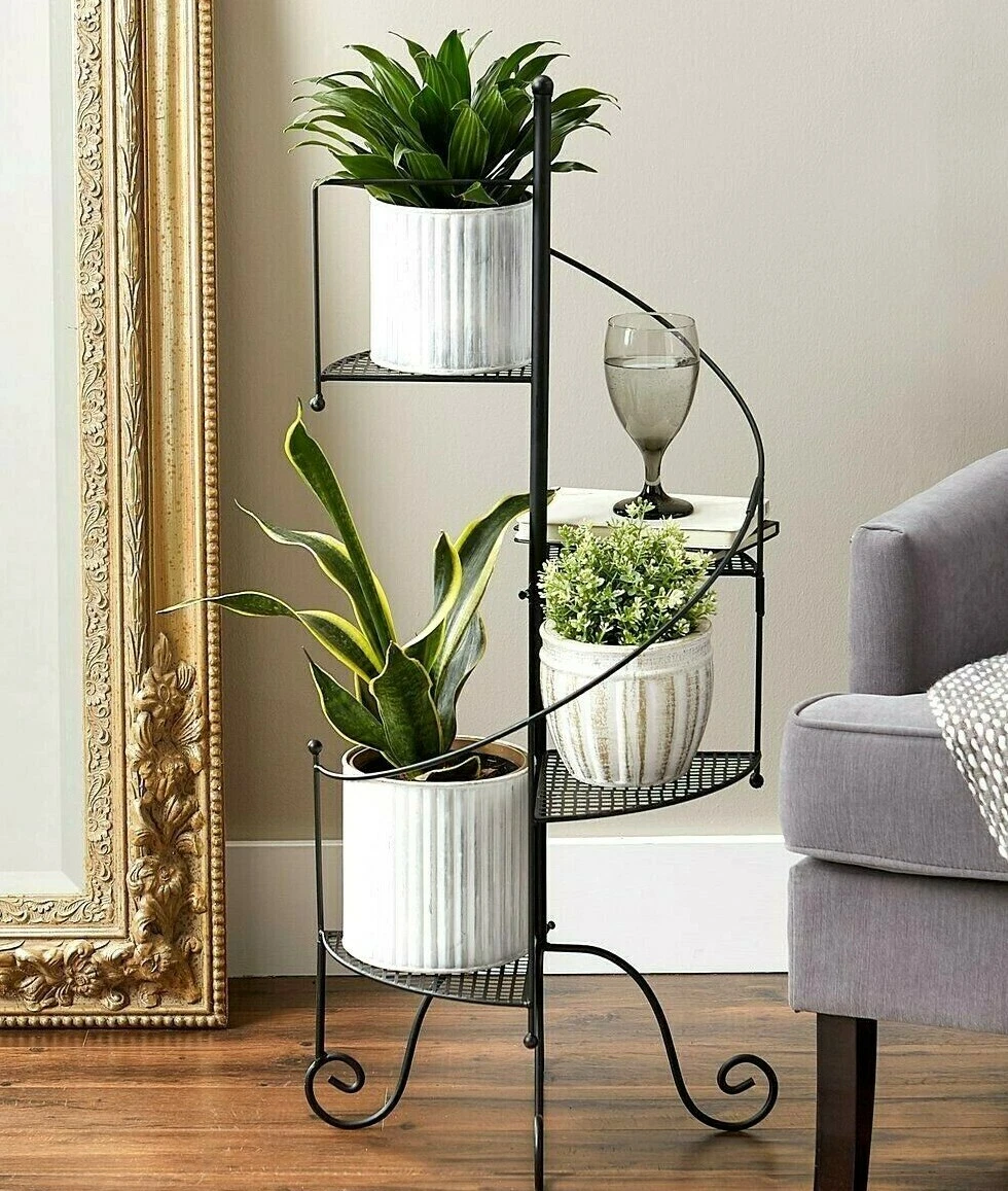 Spiral Showcase Plant Stand Black Iron Four Platform 17 034 X 39 034 H Nib Ebay